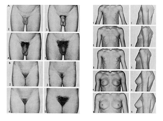 二、 身體檢查、評估Tanner stage (圖三)、身高、體重、生長速率等,
